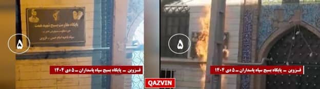 In support of the nationwide uprising and commemorating the anniversaries of the December 2017 uprising (December 28) and the 2009 Ashura uprising, rebellious youths conducted 40 audacious operations in Tehran and 25 other cities, even as the clerical regime and its Revolutionary Guards remained on high alert to suppress the nationwide uprising. These operations targeted centers of suppression and symbols of the clerical regime in cities including Mashhad, Isfahan, Karaj, Qom, Qazvin, Hamadan, Kerman, Zanjan, Yazd, Dezful, Izeh, Khorramshahr, Mahshahr, Chabahar, Damghan, Masjed Soleyman, Azna, Khorramabad, Aligudarz, Langarud, Bandar Abbas, Gonabad, Homashahr (Isfahan), Zahedan, and Dorud. The targets included: