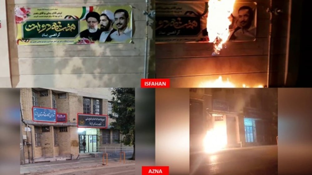 Additionally, regime banners and posters bearing the images of Khomeini, Khamenei, Raisi, Qassem Soleimani, and Pezeshkian were set ablaze in Mashhad, Isfahan, Shiraz, Bushehr, Neishabur, Karaj, Rasht, Shahriar, and Dorud.