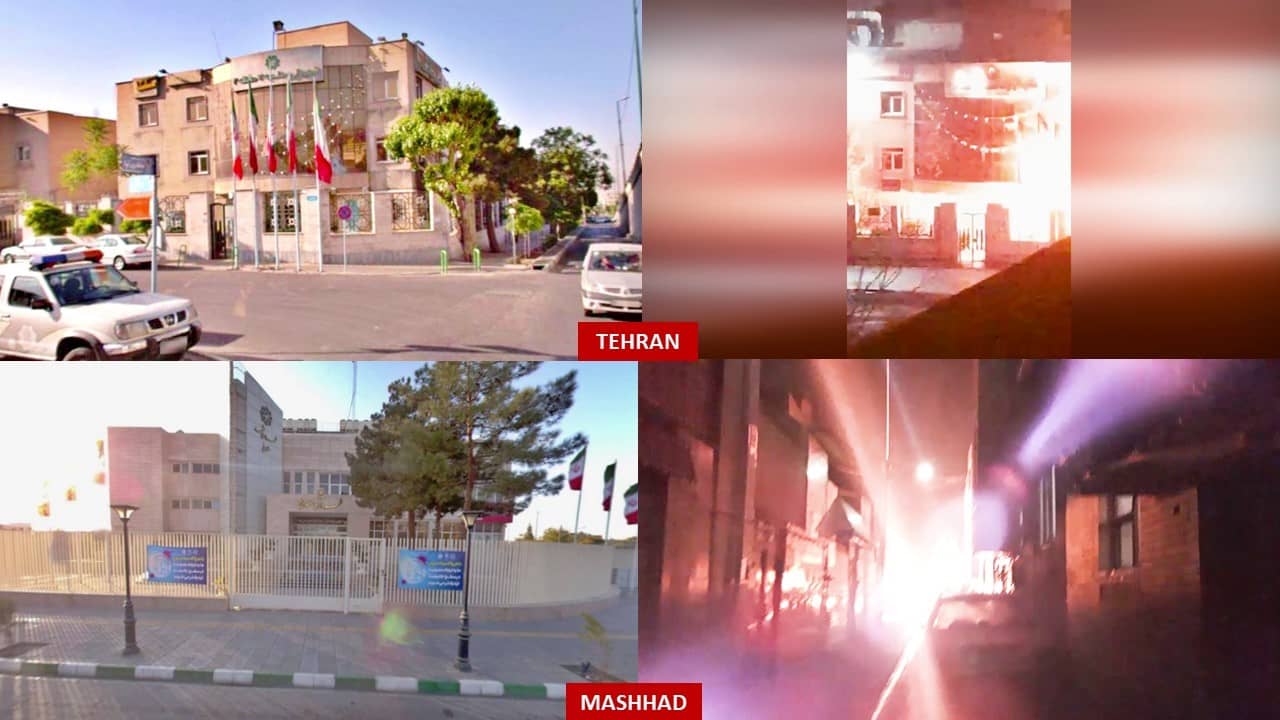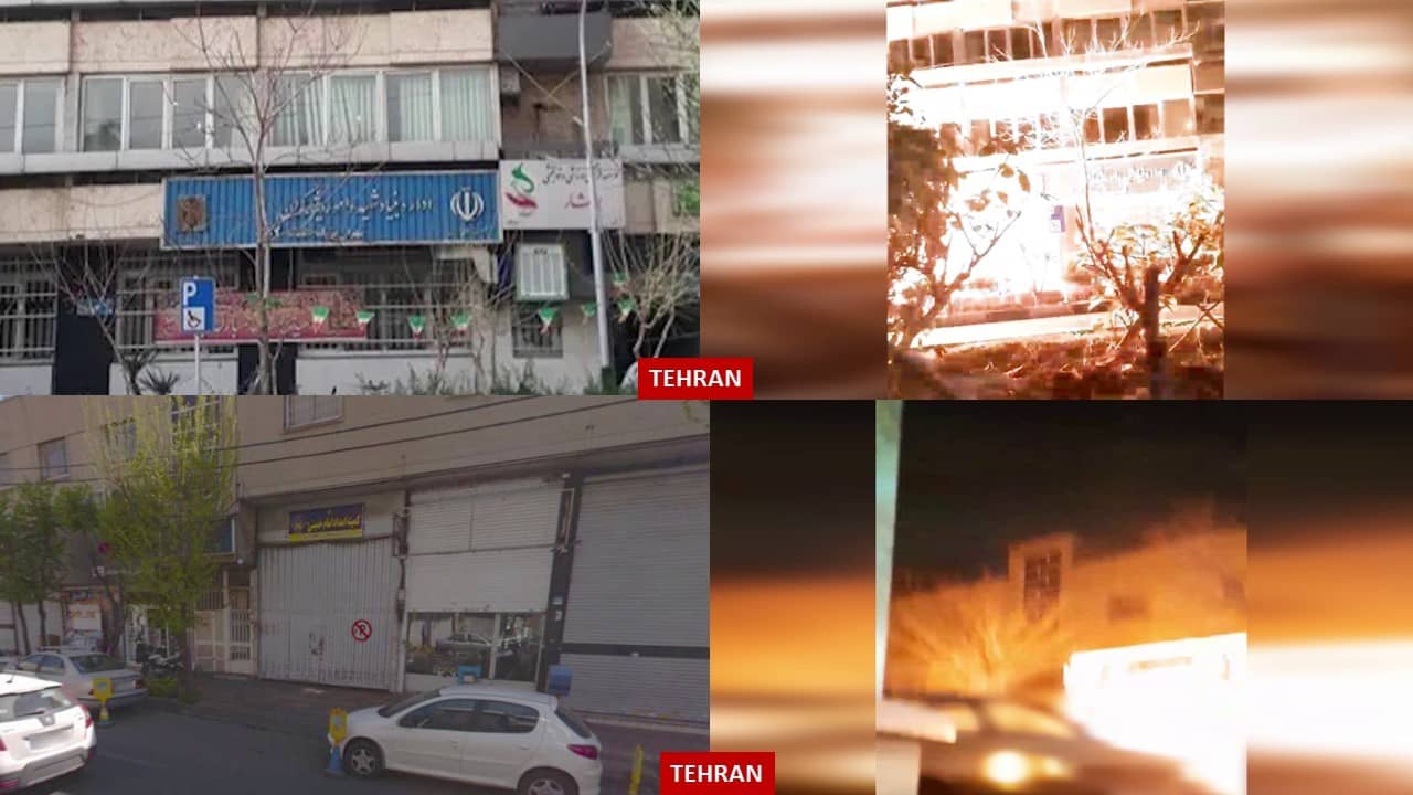 In support of the retirees’ uprising and in protest against the brutal executions over the past three weeks, rebellious youth set fire to centers of plunder and suppression, as well as images of regime leaders and signs of suppressive institutions, during 20 operations