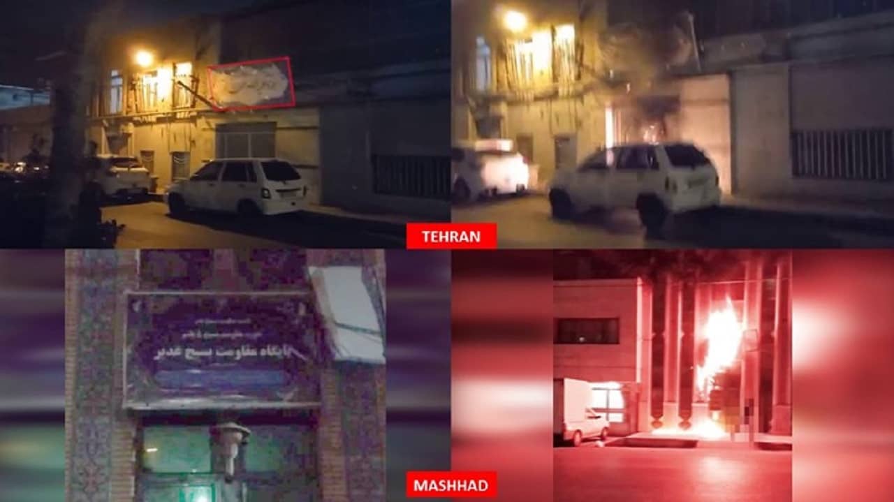 Centers of repression and plunder, along with images of regime leaders and symbols of suppressive organs, were set ablaze in 35 operations across Tehran and 17 cities