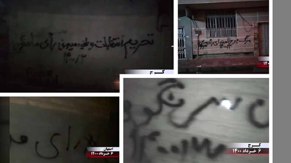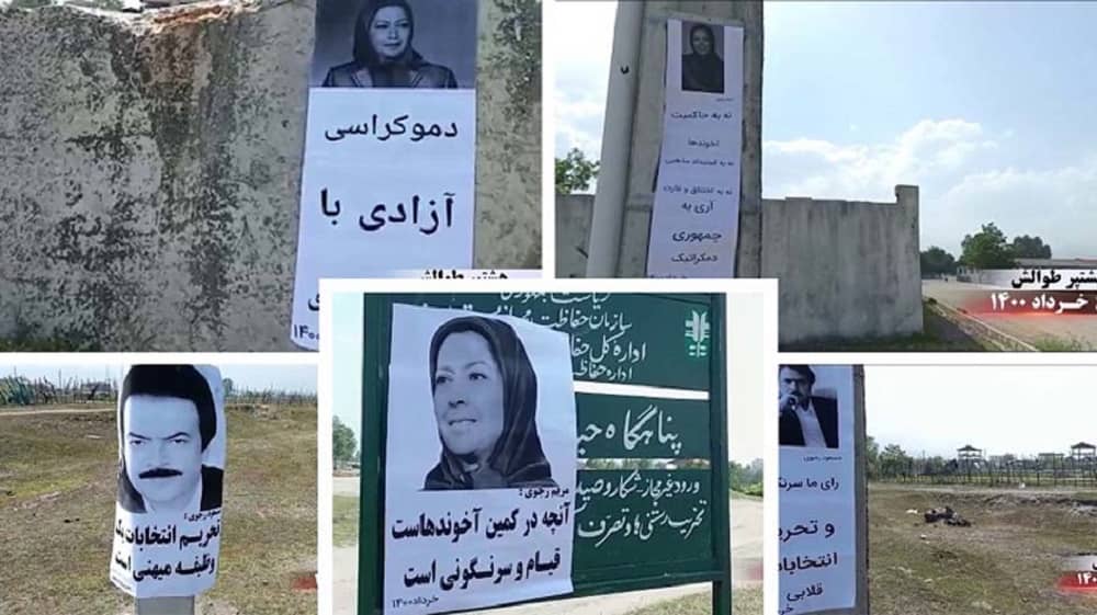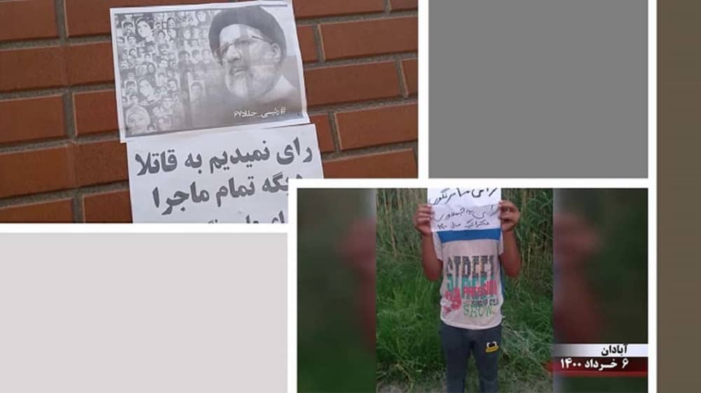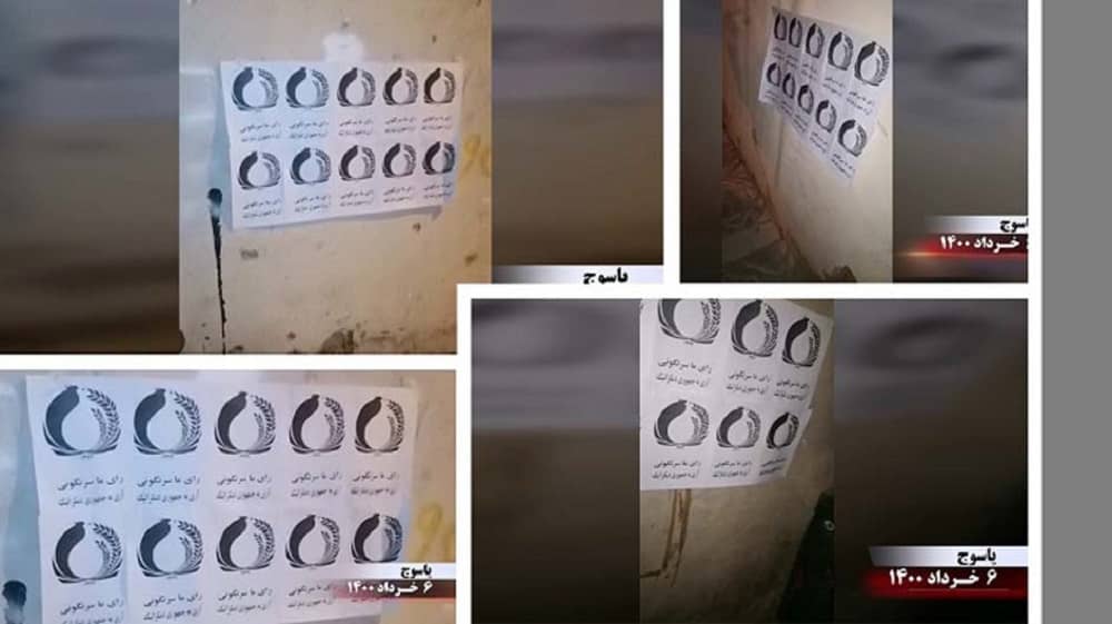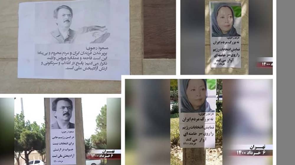 On May 27, 2021, supporters of the Mujahedin-e Khalq (MEK/PMOI) and Resistance Units called for the boycott of the clerical regime’s sham presidential election in various cities of Iran, including many parts of Greater Tehran and other cities of Iran. They posted banners and placards, wrote graffiti, and distributed leaflets. In addition to different areas of Tehran, these activities were carried out in Karaj, Isfahan, Hashtpar-e Tavalesh (Gilan Province), Semnan, Yasuj, Shiraz, Abadan, and Ahvaz.