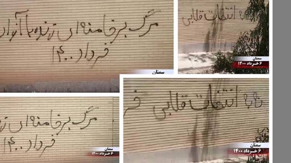 Semnan – Activities of the Resistance Units and supporters of the MEK, calling for the boycott of the regime’s sham presidential election – “No to the sham election, down with Khamenei, hail to freedom”” – May 27, 2021