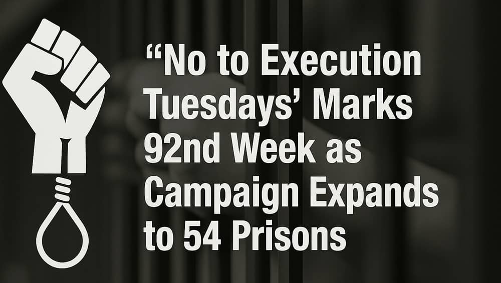The weekly hunger strike campaign known as No to Execution Tuesdays has entered its 92nd week, now encompassing 54 prisons across Iran after two additional facilities—Tircheh Block Prison in Borujerd and Ilam Prison—joined the protest. The announcement by the campaign cited an official tally of 283 executions in Mehr 1404 (September–October 2025) by the clerical dictatorship, marking the month as the bloodiest in decades.