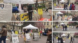 Heidelberg, Germany—March 29, 2024: Freedom-loving Iranians and supporters of the People’s Mojahedin Organization of Iran (PMOI/MEK) organized an exhibition to express solidarity with the Iranian Revolution.