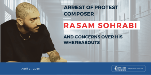 On Saturday, April 19, 2025, Rasam Sohrabi, an independent composer and artist, was arrested in Tehran by security forces. Since his detention, no official information has been released regarding his place of detention or the authority responsible for his arrest. This complete lack of transparency has sparked widespread concern about his fate, physical well-being, and mental health.