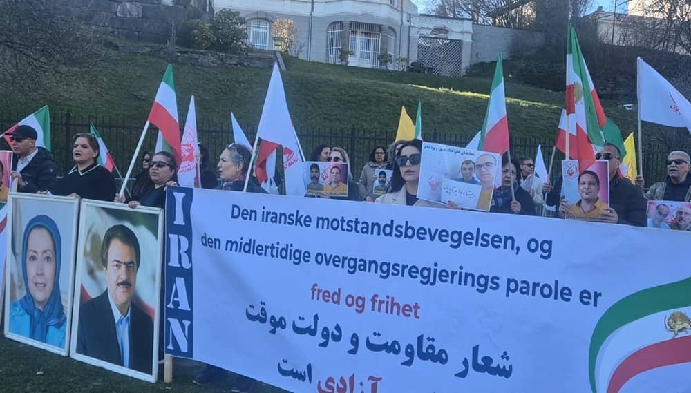 The Hague, Netherlands – April 20 2026: Supporters of the Iranian Resistance held a rally outside the Iranian regime’s embassy to protest the execution of PMOI political prisoners Hamed Validi and Mohammad (Nima) Masoom Shahi, who were executed by the Iranian regime on April 20.