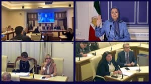 Mrs. Maryam Rajavi’s speech: “I express my gratitude for your focus on the grave violations of human rights suffered by the people of Iran. I also deeply commend the esteemed Senator Pellegrino for her initiative in convening this important session. On the eve of International Human Rights Day, we reaffirm the unwavering commitment of the Iranian people and the Iranian Resistance to achieving the noble goal of human rights in Iran. In the face of a regime that stands as humanity’s fiercest enemy in the modern world, our message of resistance is the restoration of humanity in chains. The Iranian people have paid an extraordinary price for this noble ideal, with over 100,000 martyrs for freedom, including 30,000 political prisoners massacred in 1988.