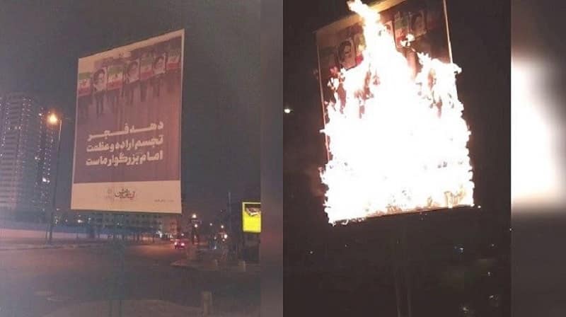 On Wednesday morning, February 10, 2021, on the anniversary of the 1979 anti-monarchic revolution, defiant youths in Tehran and various cities in Iran simultaneously set fire to entrances and headsign of Basij repressive centers as well as to images of Khomeini, Khamenei, and Qassem Soleimani in 22 locations.