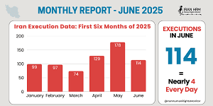 The month of June 2025 witnessed a sharp escalation in executions, mass arrests, inhumane prison conditions, and repressive measures targeting political prisoners and minorities in Iran. A total of 114 executions were carried out across the country, 95 of which were unannounced by the authorities. Six individuals were executed on espionage charges, and several acts of violence, torture, and forced disappearances of political prisoners occurred. The Islamic Republic continues its systematic use of the death penalty and arbitrary detention to suppress dissent and instill fear in the population. The Islamic Republic of Iran carried out a surge in executions during the month of June 2025, further solidifying its position as one of the world’s top executioners. A total of 114 people were executed, marking one of the bloodiest months of the year.