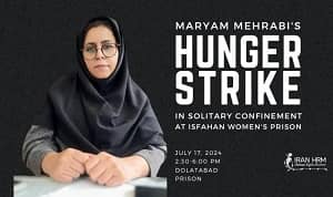 Based on the reports received by Iran Human Rights Monitor (Iran HRM), Maryam Mehrabi has been on a hunger strike for over two weeks. She is currently held in solitary confinement in the women’s prison of Dolatabad in Isfahan. Mrs. Mehrabi has been hospitalized multiple times during her detention. The inability to have visitation and communication has caused increased concerns for her family.
