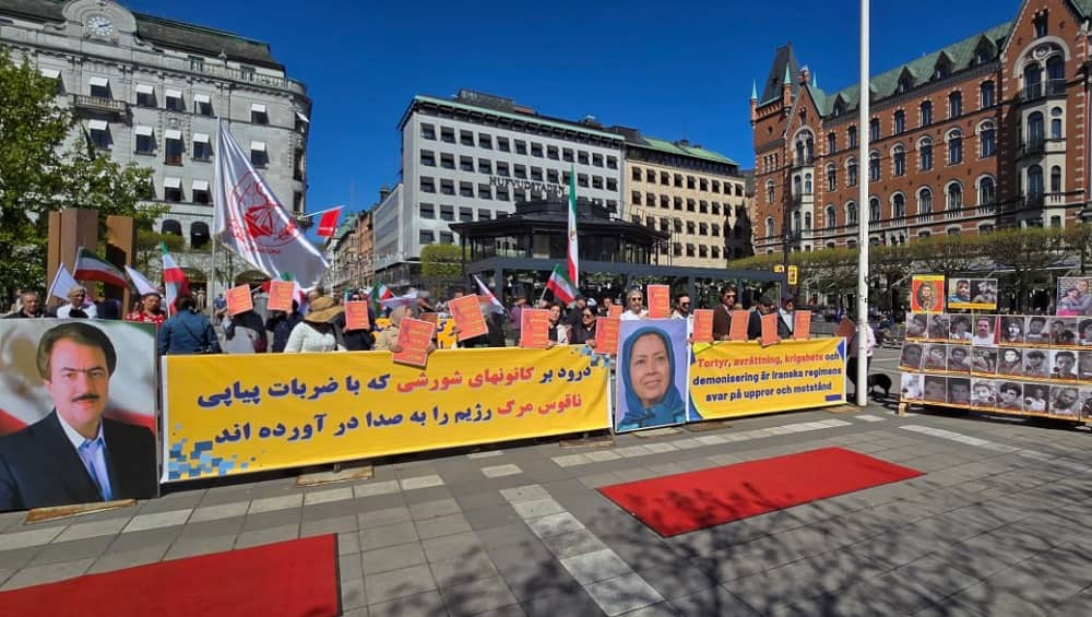 Halle, Germany—May 10, 2024: Freedom-loving Iranians and supporters of the People’s Mojahedin Organization of Iran (PMOI/MEK) held a book table and exhibition to express solidarity with the Iranian Revolution, while also protesting against the increasing wave of executions by the Iranian regime.
