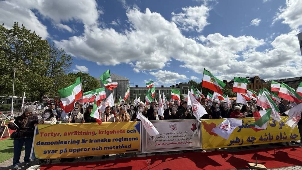 Uppsala, Sweden – May 24, 2025: Supporters of the Iranian Resistance held a rally in Uppsala to commemorate the anniversary of the execution of the PMOI/MEK’s founders by the Shah’s regime on May 25, 1972. The gathering also marked the 60th anniversary of the MEK’s founding in 1965 and six decades of steadfast struggle against two successive dictatorships in Iran: first the monarchy of the Shah, and now the theocratic regime of the mullahs.
