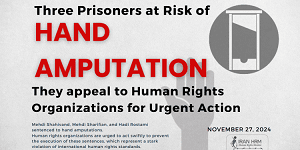 Iran HRM has obtained an open letter from three prisoners sentenced to amputation—Mehdi Shahivand, Mehdi Sharifian, and Hadi Rostami—who publicly urge human rights organizations to take immediate action to prevent their sentences from being carried out. They warn of the imminent threat posed by this inhumane punishment. This comes after the amputation sentence for two brothers imprisoned in Urmia Central Prison was recently carried out. In July 2023, four prisoners were threatened with imminent amputation by Naser Atabati, the Chief Justice of West Azerbaijan Province, during a prison inspection. Accompanied by Mojidi, the Prosecutor of Urmia, Atabati informed the prisoners that their sentences would soon be enforced. These individuals, identified as victims of dire economic conditions caused by systemic corruption, include Hadi Rostami, Mehdi Shahivand, Mehdi Sharifian, and Kasra Karami.