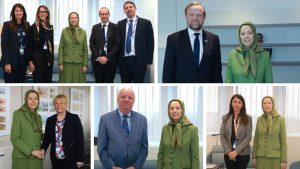 Maryam Rajavi then met with several representatives of the Council of Europe, including Senator Alessandra Maiorino from Italy, Ms. Eva Dimitz from Slovenia, Senator Joseph O’Reilly from Ireland, and a delegation from the Parliament of San Marino, including Mr. Gerardo GiovagnoliMr. Nicola Renzi, Ms. Alice Mina, and Ms. Giulia Muratori.