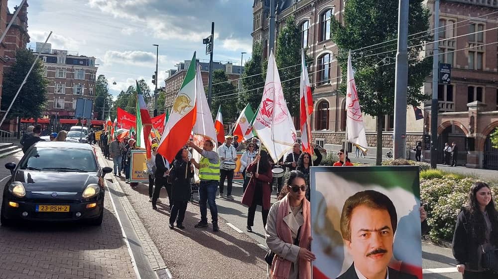 Düsseldorf, Germany—September 12, 2024: Freedom-loving Iranians and supporters of the People’s Mojahedin Organization of Iran (PMOI/MEK) held a rally and photo exhibition in solidarity with the Iranian Revolution.