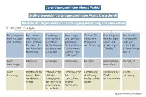 The report names Mohsen Fakhrisadeh Mahabadi, a member of the Revolutionary Guards, to be directing the research program reporting directly to the deputy Defence Minister Ahmed Wahid Dastscherdi.